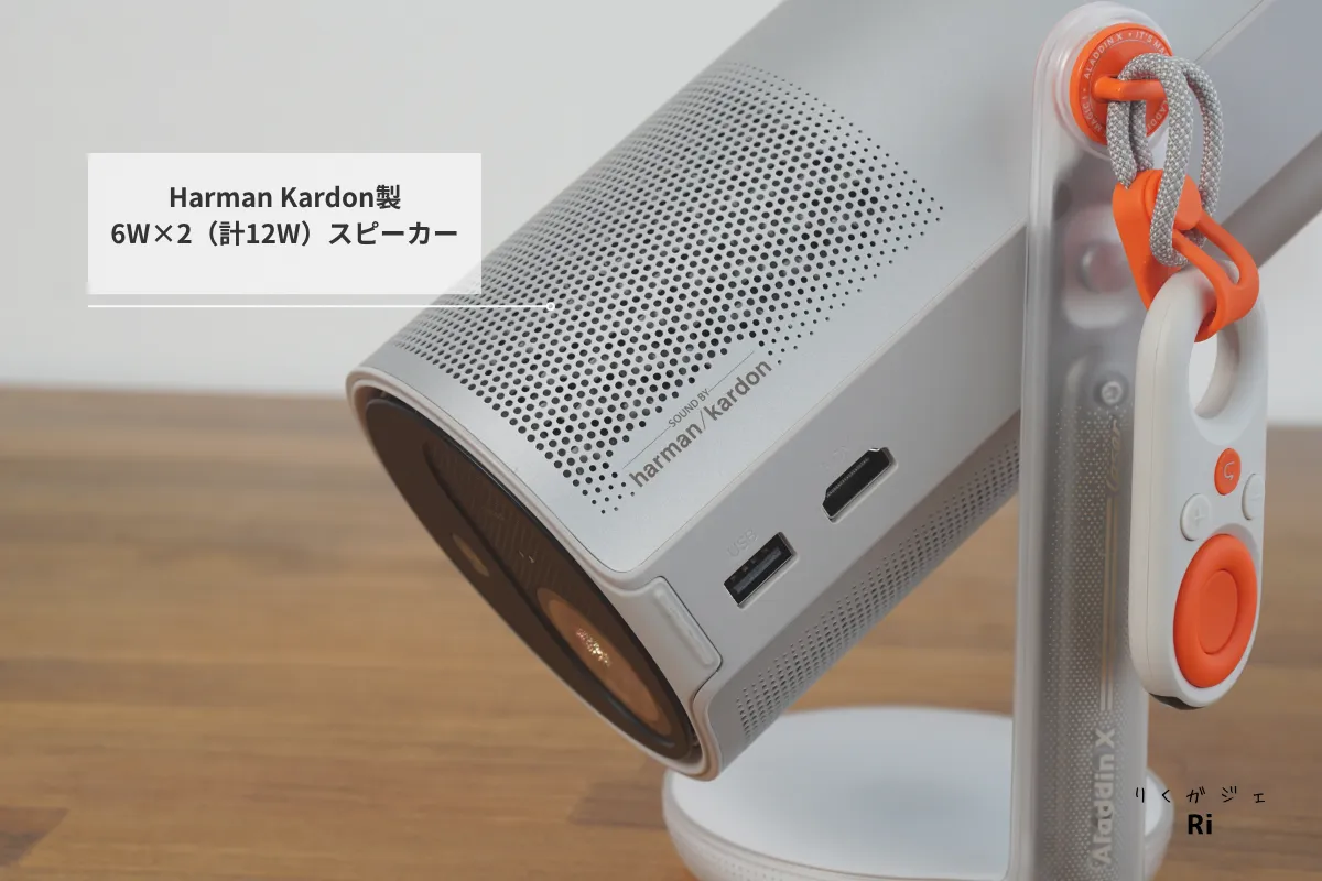 Aladdin Poca Laserは、Harman Kardon製の6W×2(合計12W)スピーカーを搭載。